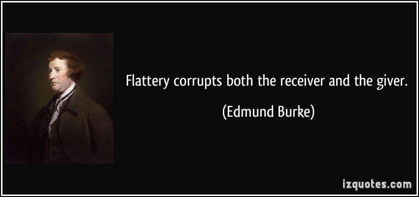 We’ve all heard the phrase “flattery will get you everywhere”. Indeed, flattery makes us feel good about ourselves, especially because it seems genuine. NPE’s know that the quickest way to get the attention off of themselves is to put the attention on something or someone else. While diversion is one way of doing this, the other is flattery. The difference is tone and subject. Diversion usually means taking a moment of criticism and redirecting the focus to a different problem in the organization (negative tone/organizational subject), while flattery takes a moment of criticism and redirects the focus on a positive, personal trait of the personal making the criticism (positive tone/personal subject).